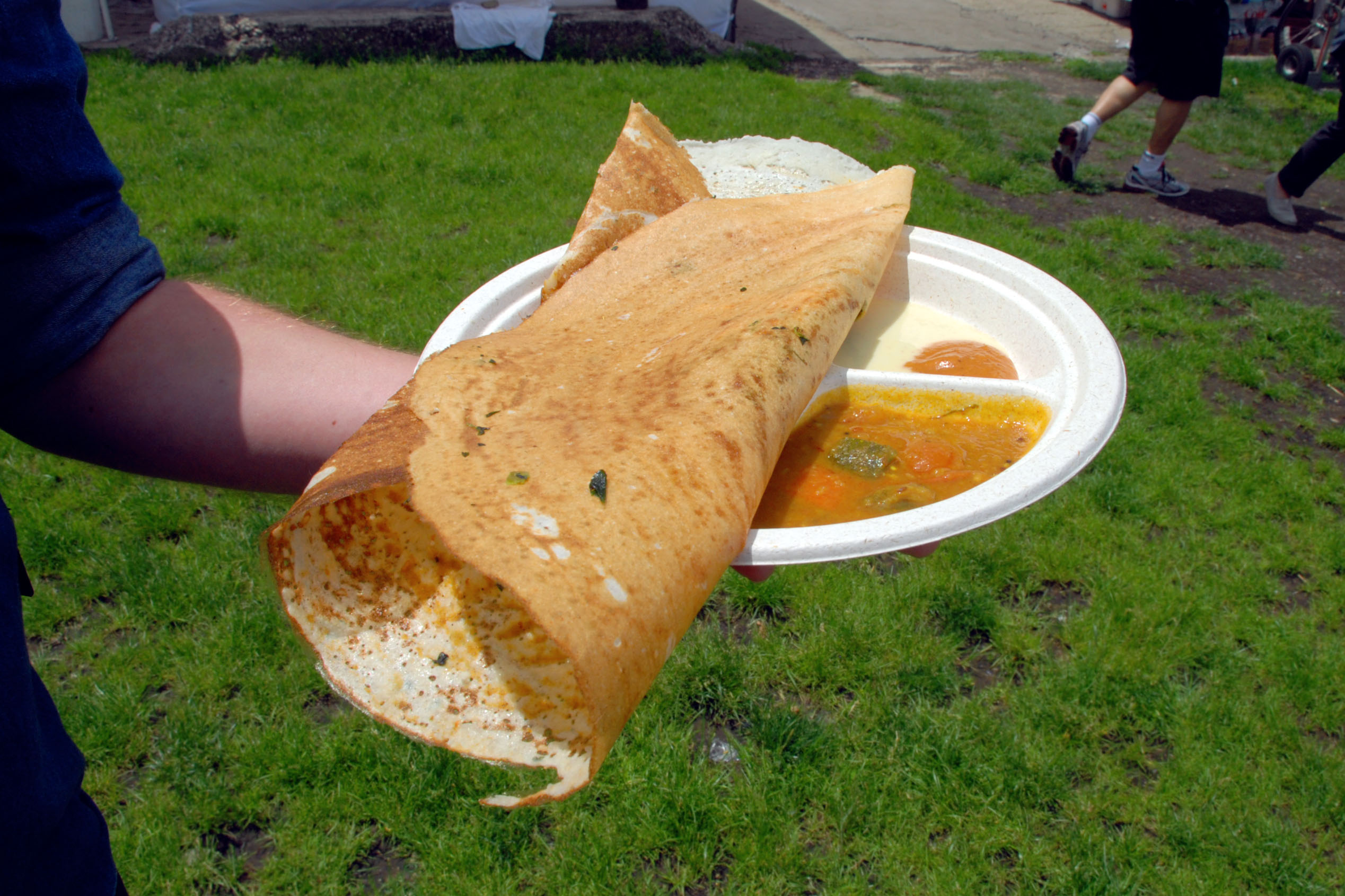Suddenly, I needed it. I kept going to the booth and would walk away, but when it came close to having to leave, I knew I couldn’t leave without trying this huge thing of the unknown. I was intrigued by it’s size and how they made it. I got the spinach and paneer dosa and it was good! I kind of assumed the spinach and paneer would have been curried; it’s the only way I’ve had it at an Indian place. The spinach and paneer were actually fresh, so it was more of a refreshing rather than heavy dish. After all that other food, I struggled with this one, but it was worth it. What is a dosa? According to their site, a dosa is a savory thin crepe made from a fermented batter of rice and black lentils and is naturally gluten free.