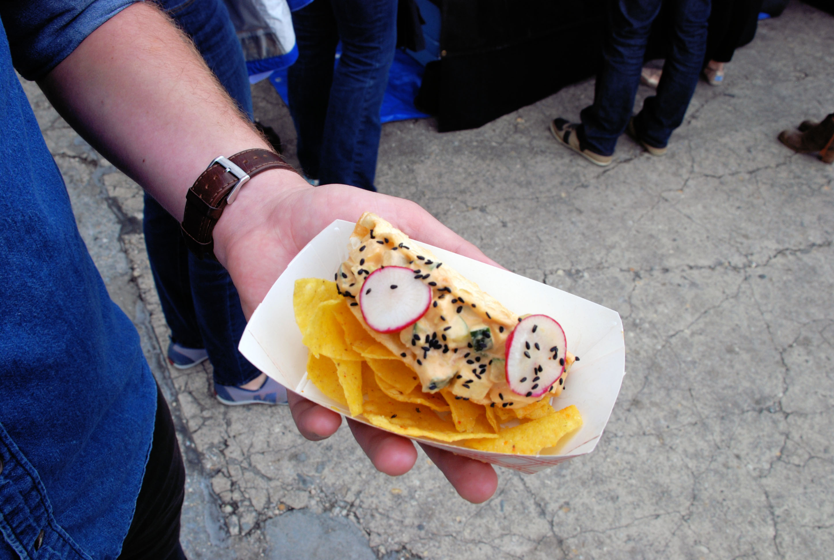 Raw fish meets taco? The one booth that made me feel like I was back in California. Here on the West Coast, we see a lot of Asian-Mexican fusions-from Kogi BBQ to Jogasaki Sushi Burrito– that thrive and well, I don’t hate it!