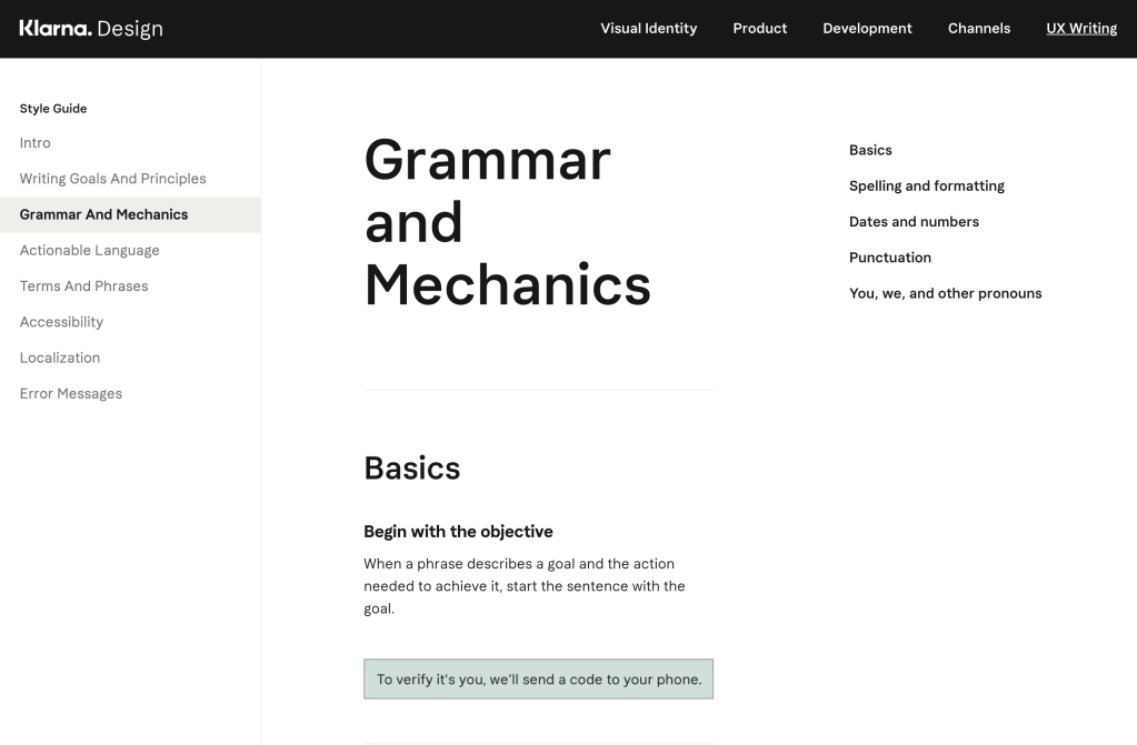 Create guidelines for everyone who needs to write in-product copy at Klarna